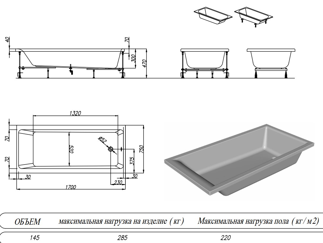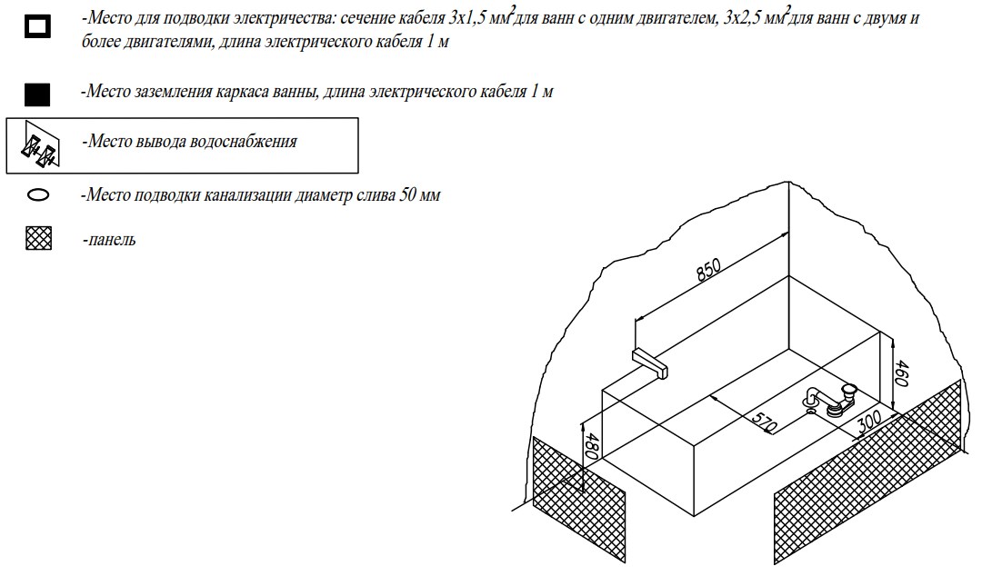 Пристенная акриловая ванна FIGARO отличается небольшой глубиной 30 см и подойдет тем, кому нужна ванна с невысокими бортиками.