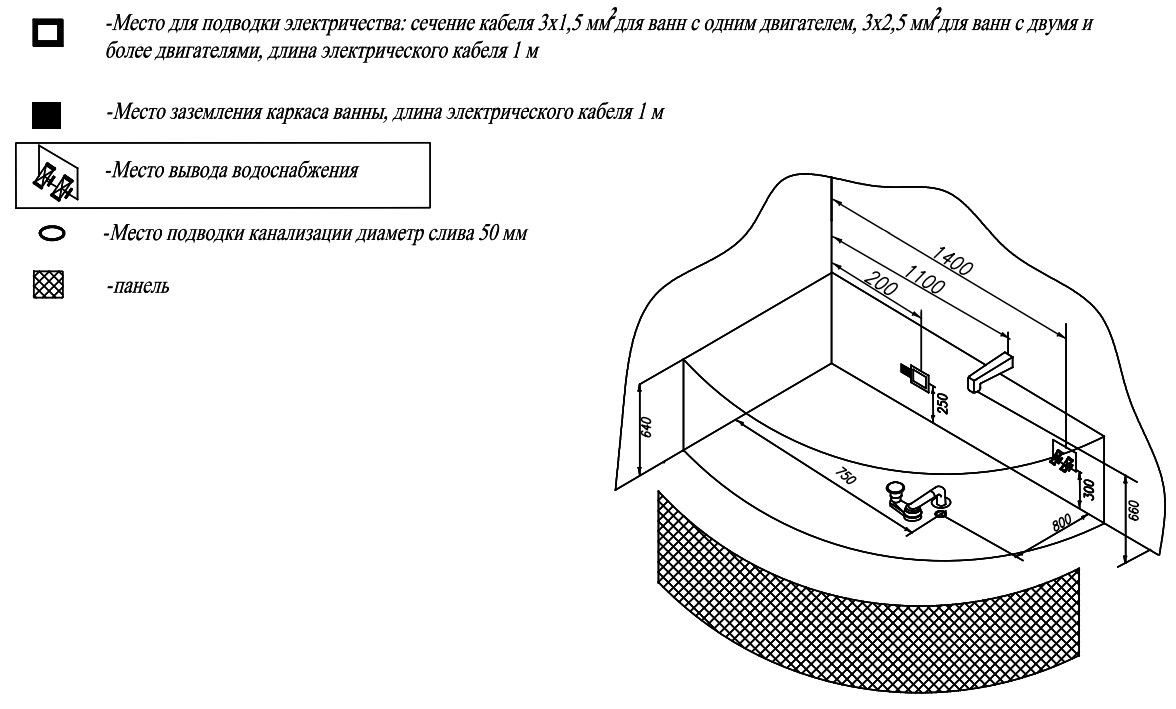 Ванна изготовлена из высококачественного акрила Lucite с толщиной листа не менее 4 мм, имеет безупречный внешний вид и долгий срок службы.