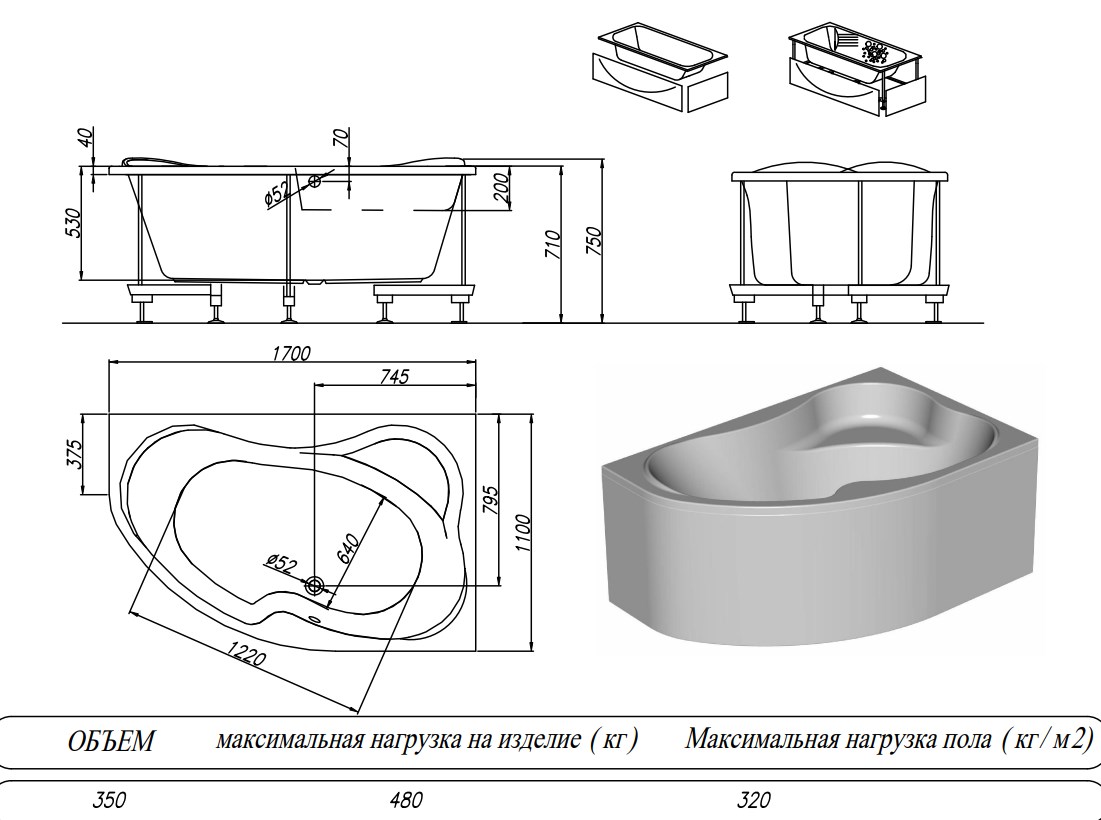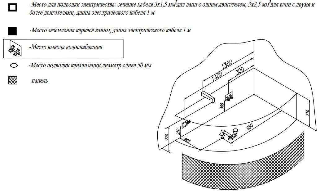 Ванна изготовлена из высококачественного акрила Lucite с толщиной листа не менее 4 мм, имеет безупречный внешний вид и долгий срок службы.