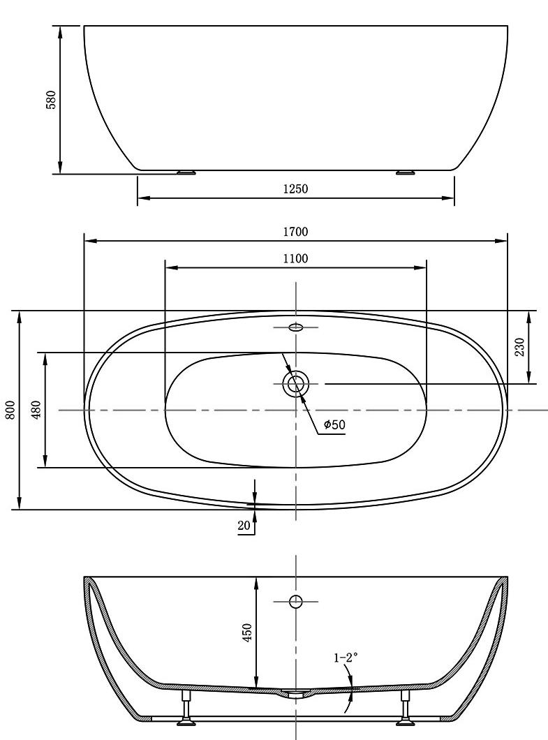 Ванна акриловая Vincea VBT-405-1700MW