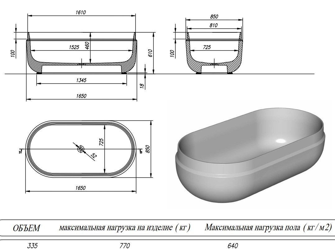 Ванна из искусственного камня Kolpa-San Boul FS 165x85 Black купить в Бресте, цена