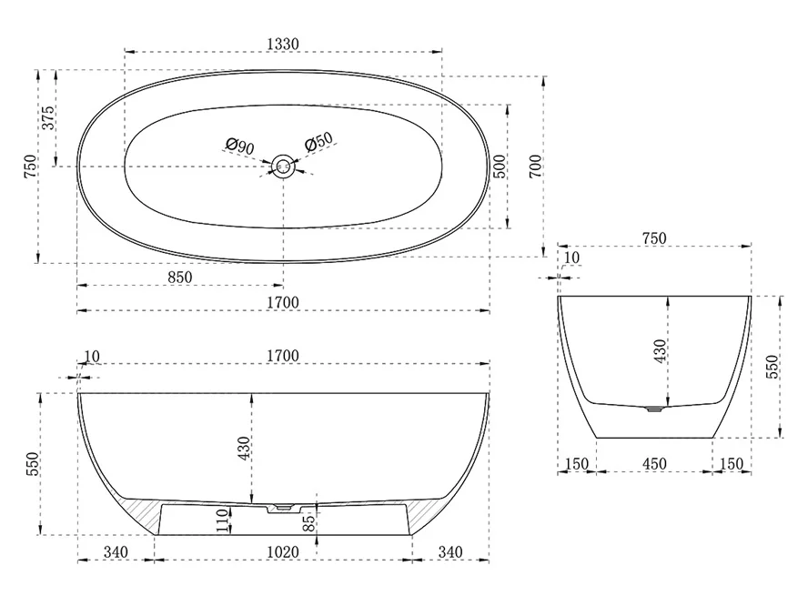 Характеризуясь гладкой поверхностью и изысканными линиями, эта ванна добавляет в ваш интерьер изысканность. Смола обеспечивает прочность и устойчивость к воздействию влаги, делая ванну долговечной и легкой в уходе.