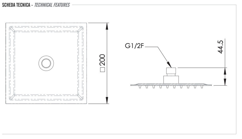 Верхний душ с шарнирным соединением 20 см Remer 357UFS20NOX, черный матовый