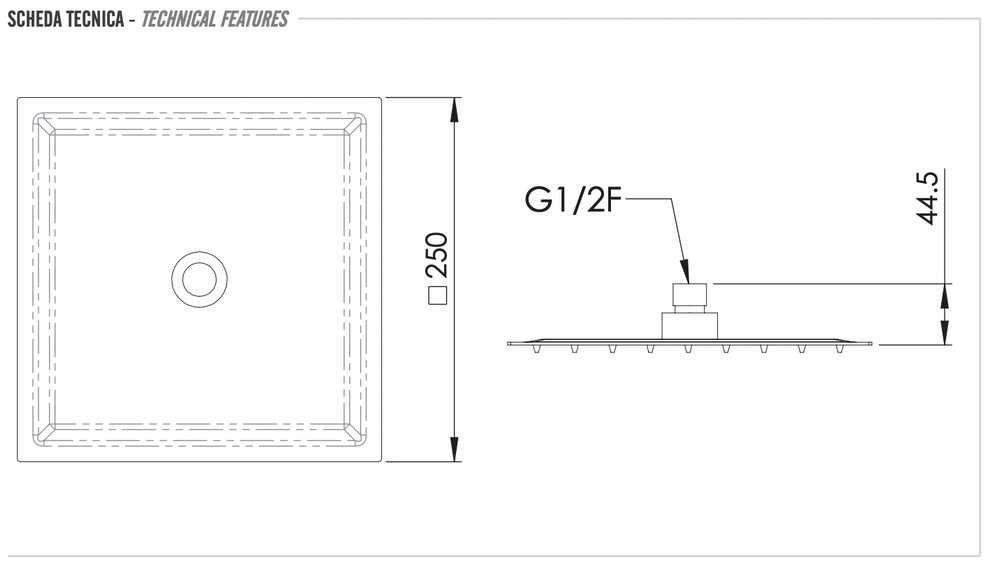 Верхний душ с шарнирным соединением 25 см Remer 357UFS25BOX, белый матовый